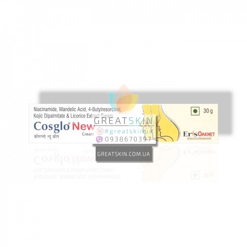 - Cosglo New Cream — це комплексний демеланізуючий крем, спрямований на зменшення темних пігментних плям на обличчі;